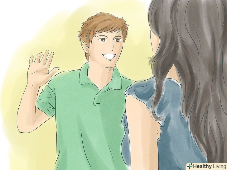 Заговорите з дівчиною. не потрібно придумувати дотепних фраз. Досить просто сказати їй "привіт"або " Здрастуй". В процесі розмови можна сказати комплімент або задати дівчині питання.- Якщо вам складно починати розмову, то прочитайте наступні статті: