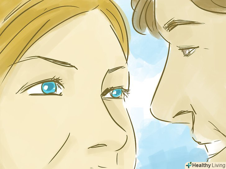 Слідкуйте за тим, як вона дивиться на вас. Якщо ви подобаєтеся дівчині, то вона буде довго дивитися на вас або відразу ж відводити погляд. Обидві ситуації можуть означати одне і те ж. Якщо ви поглянули на дівчину і побачили, що вона пильно дивиться на вас, то можливі два варіанти – ви їй подобаєтеся або не подобаєтеся. Також вона може швидко повернути голову в іншому напрямку. Якщо її погляд не виражає дружелюбності, то перевірте свій зовнішній вигляд. Якщо дівчина швидко відводить погляд, то ймовірно, що ви їй подобаєтеся, але вона нервує.- Слід розуміти, що під час розмови дівчата зазвичай дивляться в обличчя співрозмовнику, так що не поспішайте з висновком, ніби ви їй подобаєтеся, якщо ви просто розмовляєте, а вона вас уважно слухає. Якщо ви жодного разу не розмовляли з дівчиною, то шансів зустрічатися з нею у вас мало. Дружні відносини можуть перерости в любов, а ось відсутність будь-яких відносин – навряд чи.