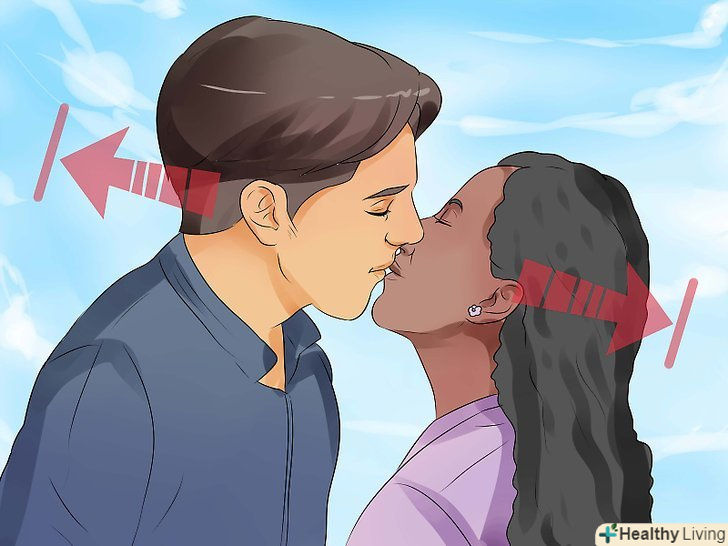 Під час поцілунку пестіть шию партнера. ідея полягає в тому, що ви можете зробити невеликий масаж шиї, чергуючи його з поцілунками. Це покаже, що ви дійсно дбаєте про самопочуття свого партнера. До того ж, це зробить поцілунок більш чуттєвим. Не намагайтеся зробити повноцінний масаж, просто легенько помасажуйте шкіру. Можна поєднати такий масаж з погладжуваннями голови. [10]