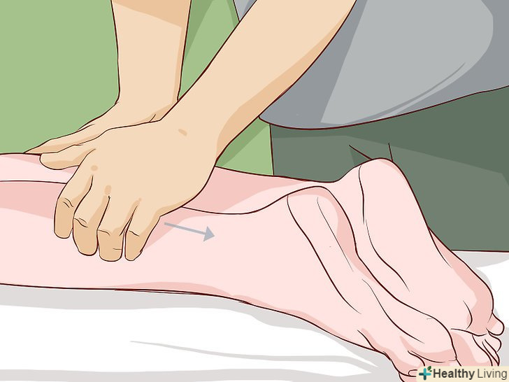 Не забудьте приділити увагу ступень. додайте ще крему або масла на долоні і акуратно розітріть нижню частину ступень партнера великими круговими рухами. Зробіть невеликі кругові рухи навколо щиколоток і м'яко помасажуйте область між пальцями ніг. [11]- Залежно від того, наскільки ваш партнер чутливий до лоскоту, можливо, вам доведеться пропустити цю частину. Але якщо йому приємні дотики до ступень, то не варто їх ігнорувати.