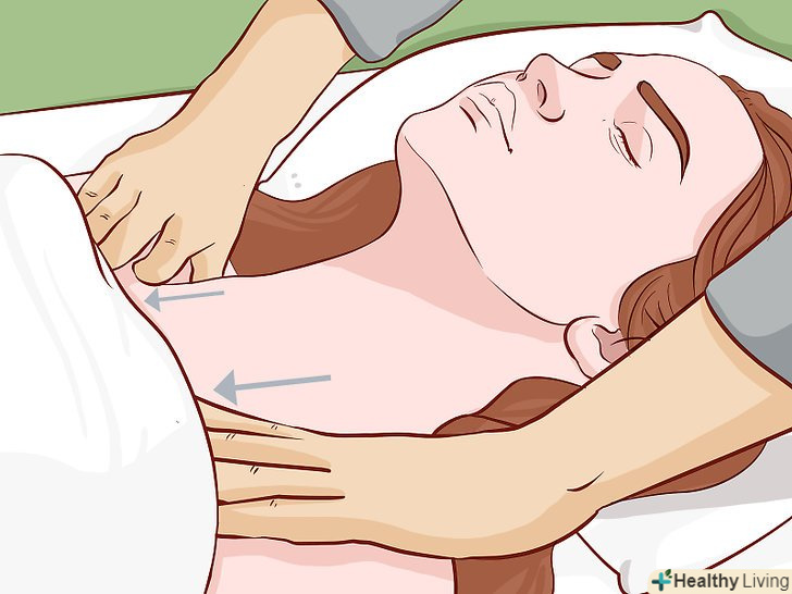 Для початку розітріть між долонями масло або крем на натуральній основі. солодке мигдальне Масло, кокосове масло та масло жожоба-це хороші варіанти, які не повинні викликати роздратування шкіри партнера. Для початку використовуйте половину столової ложки (7 мл) кошти і додайте більше, коли руки висохнуть. Перед тим як приступати до масажу, розітріть крем або масло між долонями, щоб нагріти його. [7]- Додайте кілька крапель ефірних масел в базисне масло або крем, щоб надати йому приємний аромат. Відмінними варіантами є лаванда, перцева м'ята, бергамот і сандалове дерево.