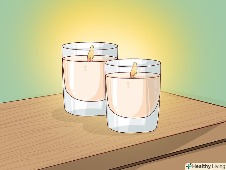 Приглушіть світло і встановіть кілька свічок, щоб забезпечити романтичне освітлення. яскраве верхнє світло навряд чи створить потрібний настрій, тому краще вимкніть його і запаліть свічки. Якщо вам потрібно більше освітлення, включіть лампу. Можна накрити її прозорим шарфом, щоб приглушити світло. [3]- Щоб внести в цей романтичний процес особливу нотку, запаліть улюблену ароматичну свічку вашого партнера.