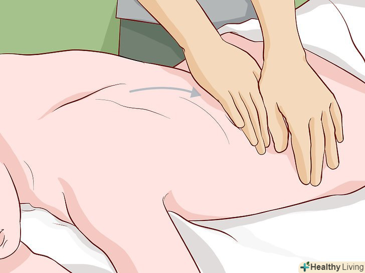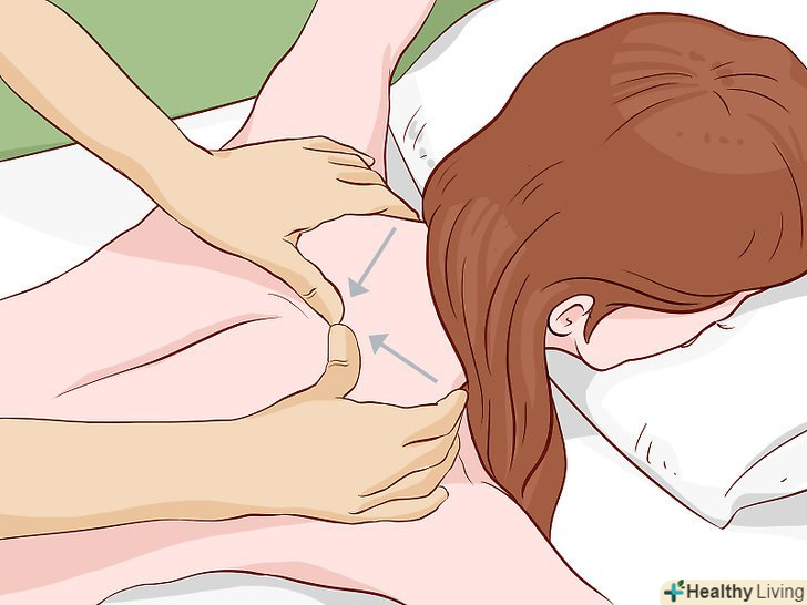 Почніть з області шиї і плечей, використовуючи довгі погладжування з м'яким натиском. попросіть партнера лягти на живіт, щоб в першу чергу попрацювати над його плечима і спиною. Пам'ятайте, що ваша мета полягає не в тому, щоб зробити партнеру глибокий масаж тканин або полегшити біль в м'язах. Вам важливо ніжно пройтися по всіх місцях, а також пробудити в партнері бажання чогось більшого шляхом впливу на його тіло (хоча розраховувати на це варто не завжди-дійте по ситуації). [8]- Звіряйте силу натиску з відчуттями партнером. Можливо, він захоче більш глибокий масаж або, навпаки, більш легкий.