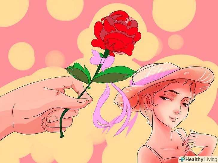 Дійте нестандартно. наприклад, в День святого Валентина (якщо відзначаєте) будьте милим або турботливим , а не показушним і неоригінальним. Великий букет з троянд вважається прийнятим романтичним подарунком, але більшість дівчат більше зрадіють маленькому букету своїх улюблених квітів, перев'язаних яскравою стрічкою. Запам'ятовувати переваги дівчата, адже даний факт сподобається їй більше будь-яких вигадок.- Якщо ви тільки почали зустрічатися і поки не знаєте уподобань дівчата, вибирайте такий подарунок, який буде символом ваших почуттів або нагадає про спільні хвилини. Наприклад, подаруйте дівчині парфуми з персиковим ароматом і скажіть, що цей запах нагадує вам посмішку дівчини в погожий літній день.