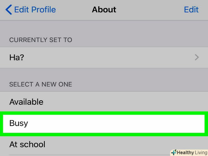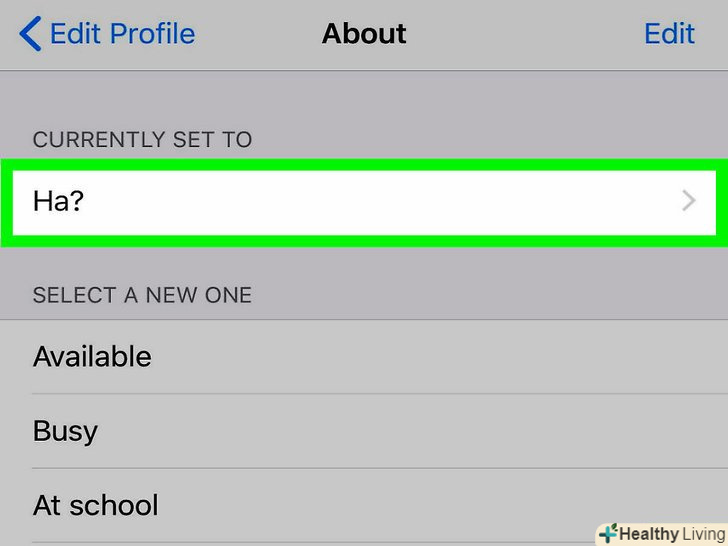 Придумайте цікавий статус. програма WhatsApp пропонує список готових статусів на кшталт "низький рівень заряду", але краще придумати щось особливе. Подумайте, що ви хочете сказати про себе за допомогою статусу. Це може бути рядок з улюбленої пісні, фільму або серіалу. Ще можна використовувати дотепне зауваження.- Якщо вам і конкретній дівчині подобається певна пісня або фільм, то цитата в статусі допоможе розговоритися.