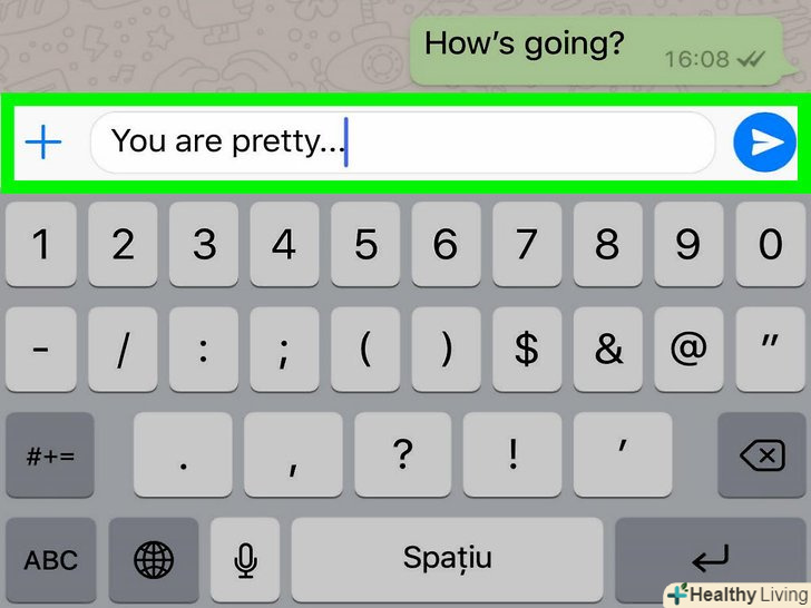 Форматуйте текст у повідомленнях та профілі. у профілі WhatsApp представлені дуже короткі відомості. На відміну від широких можливостей Facebook, тут передбачена лише фотографія, статус, зайнятість і контактні дані. Використовуйте такі функції, як форматування тексту, щоб показати навички володіння WhatsApp.- Текст в повідомленні або статусі можна написати напівжирним накресленням, курсивом або навіть перекресленим шрифтом за допомогою спеціальних символів навколо бажаного слова. Наприклад, зірочки дозволяють написати слово жирним шрифтом (*зразок*). Нижнє підкреслення може перетворити ваше слово в _курсив_, а тильди ~перекреслять~ слово. [1]