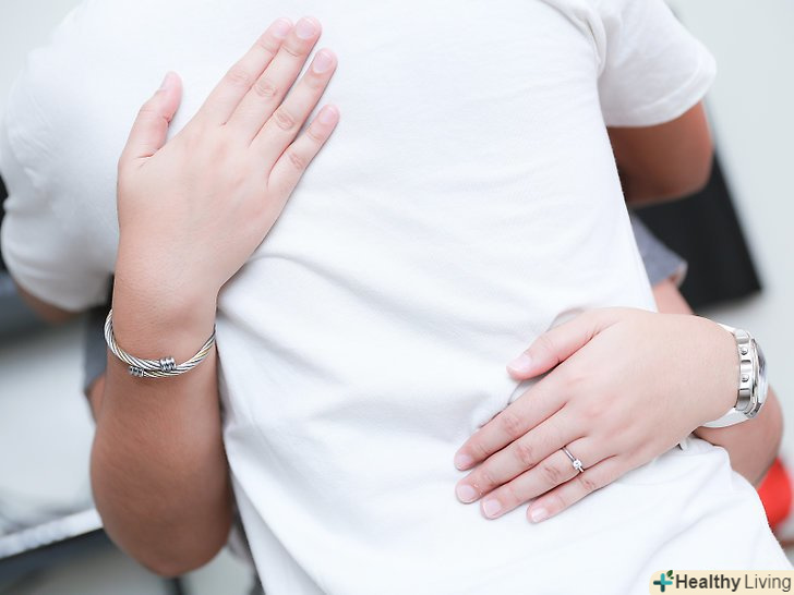 Підніміть праву руку і торкніться потилиці хлопця. великий палець повинен розташовуватися збоку шиї, а голову слід присунути до правого плеча хлопця. М'яко Покладіть голову йому на плече.