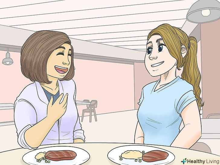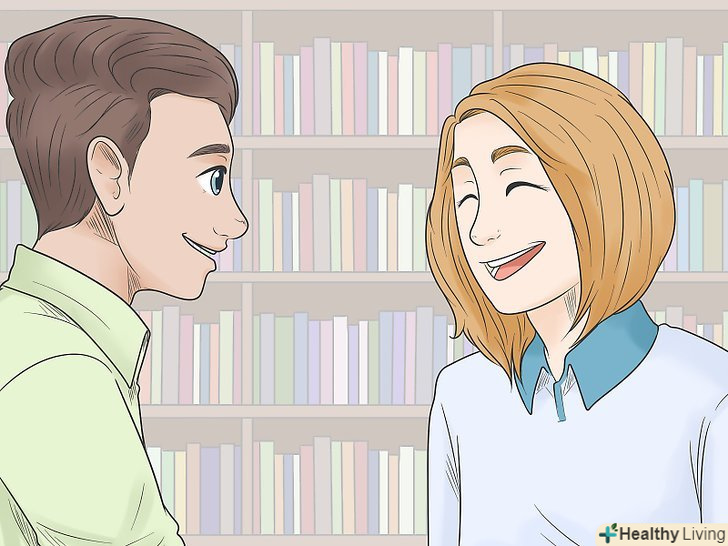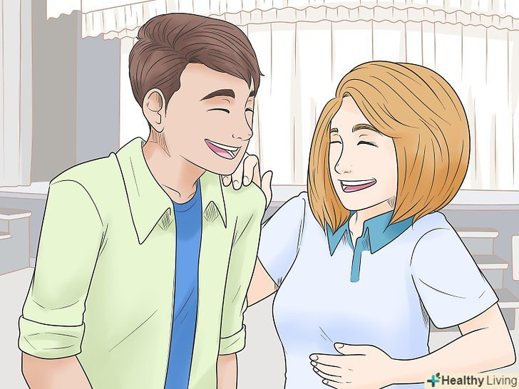 Жартуйте, щоб показати своє почуття гумору. гумор неодмінно допоможе вам зблизитися. Якщо вона знаходить вас забавним, то їй буде комфортніше у вашій компанії і вона може порахувати вас привабливим. [4]- Загальні жарти створюють особливий зв'язок між людьми. Якщо ви поділяєте інтерес до комедійних фільмів або при зустрічі сталося щось кумедне, то використовуйте такі факти в бесідах. Так, якщо вам обом подобається фільм «телеведучий», обмінюйтеся смішними цитатами з фільму.