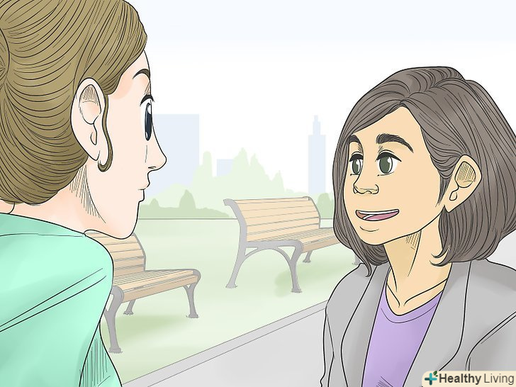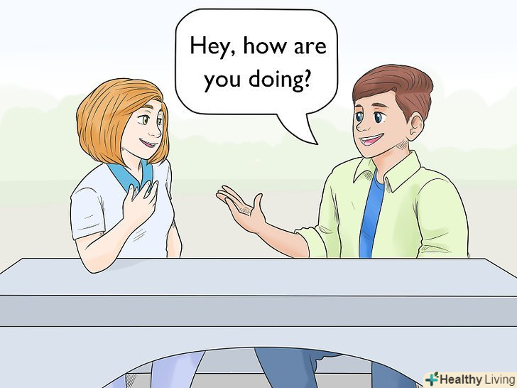 Посміхайтеся і вітайтеся при зустрічі. Один з найпростіших способів стати друзями з дівчиною, яка Вам подобається, - вести себе привітно і дружелюбно при зустрічах. Покажіть, що ви раді бачити її: дивіться в очі, тепло посміхайтеся і вітайтеся. [1]- Не потрібно витріщатися і посміхатися довше 3-4 секунд або здалеку, інакше ваша поведінка буде виглядати дивно. Підійдіть на відстань ближче трьох метрів, щоб привітатися.