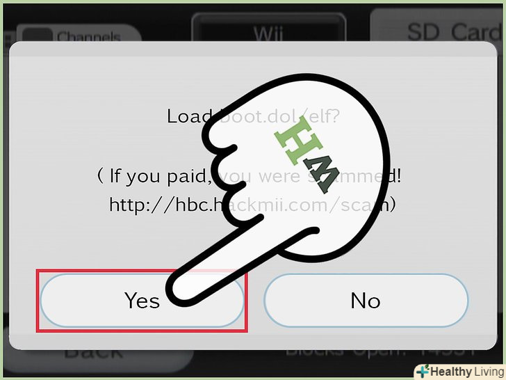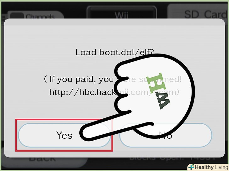 Підтвердіть спливаюче повідомлення. коли ви вставите SD-карту, з'явиться вікно з повідомленням " завантажити файл boot.dol/elf?». Виберіть "так", щоб продовжити процес софтмоддінга.