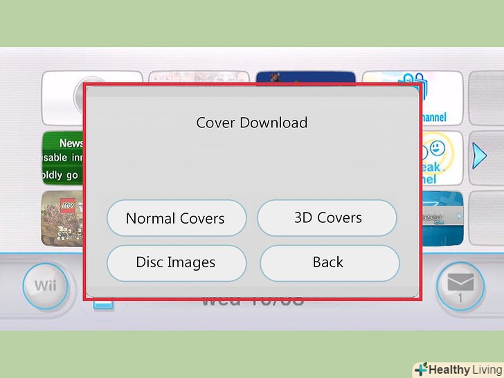 Скачайте обкладинку.на "Wiimote «натисніть "1", щоб відкрити меню завантаження обкладинки. Ви можете вибрати між кількома різними типами зображення, включаючи обкладинки і образи дисків.