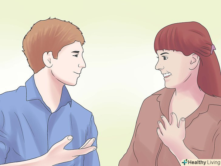 Зверніть увагу, якщо він без причини сміється біля вас. якщо він відчуває потяг до вас, він буде більше сміятися біля вас, тому що буде відчувати радість і хвилювання, перебуваючи поруч. Ви можете сказати щось не дуже смішне, а він вже розсміється, або ви навіть можете не помітити гумору в своїх словах, а він почне сміятися просто тому, що нервує. Це всі ознаки того, що ви йому подобаєтеся.- З іншого боку, він може і не засміятися над вашою жартом, тому що він дуже нервує і занадто турбується про те, що ви про нього думаєте, щоб стежити за вашими словами!