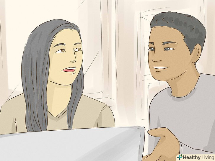 Задавайте хлопцеві питання, щоб краще його дізнатися. Люди дуже люблять говорити про себе, тому він стане набагато впевненіше, якщо ви проявите інтерес до того, що він розповідає. Дайте йому можливість розповісти щось цікаве, задаючи відповідні питання. Потім уважно вислухайте його відповідь. Кивніть і у відповідь частково перефразуйте сказане. [8]- Можна запитати: "які у тебе плани на літо?", "Чим ти займався в минулі вихідні?"або" яка музика тобі подобається? Яка у тебе улюблена група?»
