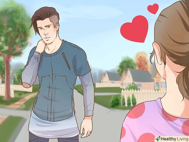 Фліртуйте. [6] якщо ви хочете побудувати відносини з людиною, яка відкрито не проявляє до вас інтерес, спробуйте фліртувати з ним. Флірт-це манера поведінки, що привертає увагу потенційного партнера. Флірт включає в себе безліч видів і форм. Якщо вам подобається людина, швидше за все, ви вже показуєте йому свій інтерес, хоча самі не замислюєтеся про це. Ви можете посміхатися цій людині, намагатися встановити і зберегти (або навпаки перервати) зоровий контакт, сміятися, говорити компліменти і жартувати, перебуваючи поруч з ним. Все це відноситься до флірту.- Якщо людина, яка Вам подобається, відповідає на ваш флірт подібними діями, то, швидше за все, ви йому небайдужі.