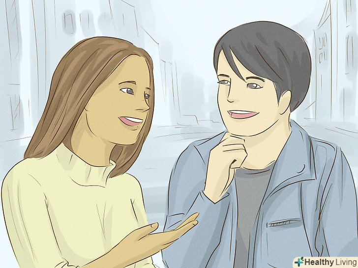 ПодружитесяЗ друзями хлопця. завоювати симпатію хлопця буде простіше, якщо ви сподобаєтеся його друзям. Звертайтеся до них в класі, на перервах, за обідом і на факультативних заняттях. Запитуйте друзів хлопця про хобі, обговорюйте домашні завдання і помічайте спільні захоплення на зразок конкретних фільмів або книг. [3]- Як люди стають друзями? Вони знаходять спільні інтереси, які стають темами для бесід. Ведіть себе відкрито, посміхайтеся і задавайте питання.