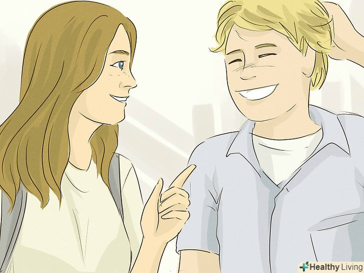 ДемонструйтеПочуття гумору і Легка вдача . ризикуйте і пробуйте нове, навіть якщо вам страшно. Не бійтеся сміятися над собою або жартувати в присутності хлопця. Гарне почуття гумору і весела вдача — це привабливі якості! [4]- Наприклад, якщо на уроці потрібні добровольці, сміливо пропонуйте свою кандидатуру.