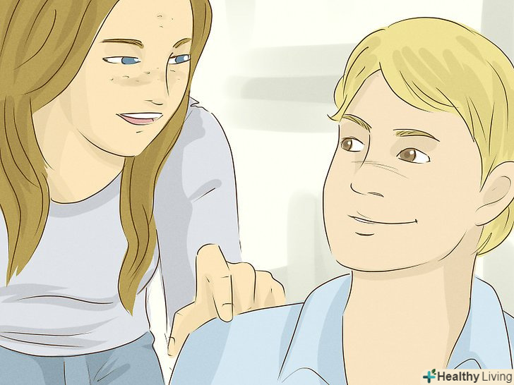 Подолайте страхДотиків і оцініть його реакцію. доречні дотики на кшталт торкань руки або плеча — відмінний спосіб оцінити почуття хлопця. Якщо він посміхається і не ухиляється, то йому приємно ваша симпатія. Якщо ж він відсторонився від вас, то йому не цікава подібна близькість. [7]- Такі дотики допоможуть зміцнити зв'язок між вами, нехай навіть дружню.