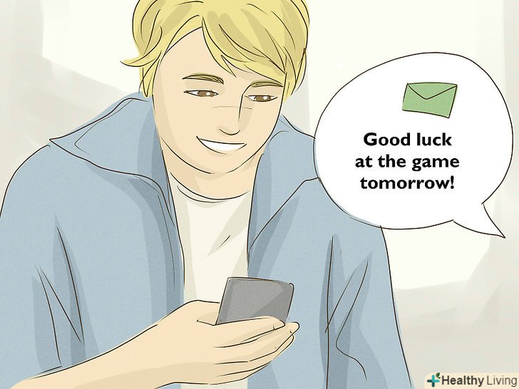 Підтримуйте хлопця і запам'ятовуйте важливі подробиці. Проявляйте увагу до подій в його житті на зразок важливої контрольної роботи, спортивного матчу, змагань або екскурсії. Згадуйте про це при зустрічі. Якщо у вас є номер телефону хлопця, можна написати йому повідомлення зі словами підтримки. [9]- Наприклад, напишіть: "удачі в завтрашній грі!»