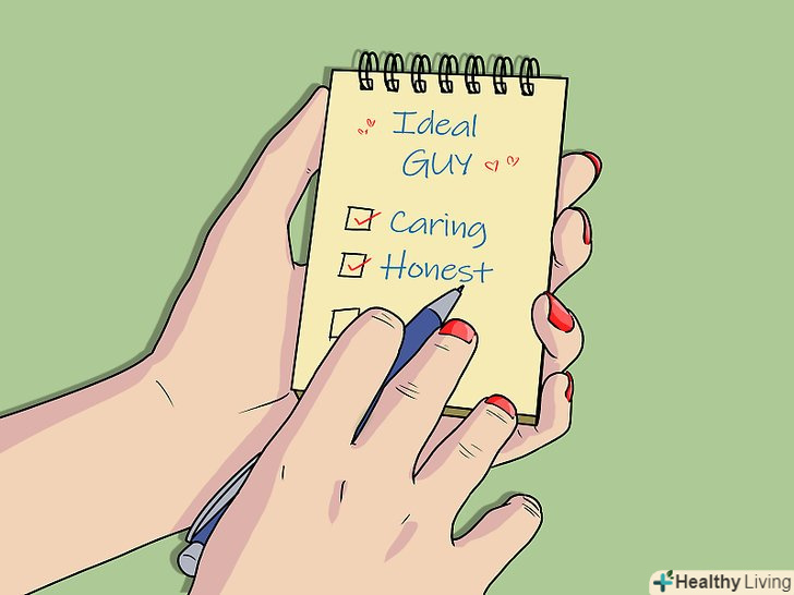 Розставте пріоритети в тому, що вам потрібно і чого ви хочете від чоловіка. це допоможе вам зупинити увагу на тих претендентів, які відповідають вашим вимогам. Складіть список того, що Вам абсолютно необхідно бачити в партнері, а потім складіть окремий список того, чим йому було б непогано володіти. Потім розставте пріоритети в обох списках, щоб знати, що не підлягає обговоренню і в чому ви готові піти на компроміс. [14]- Наприклад, можливо, вам потрібен турботливий, чесний хлопець з широким кругозором. Крім того, у нього повинна бути улюблена робота, а також він повинен любити кішок і любити походи.