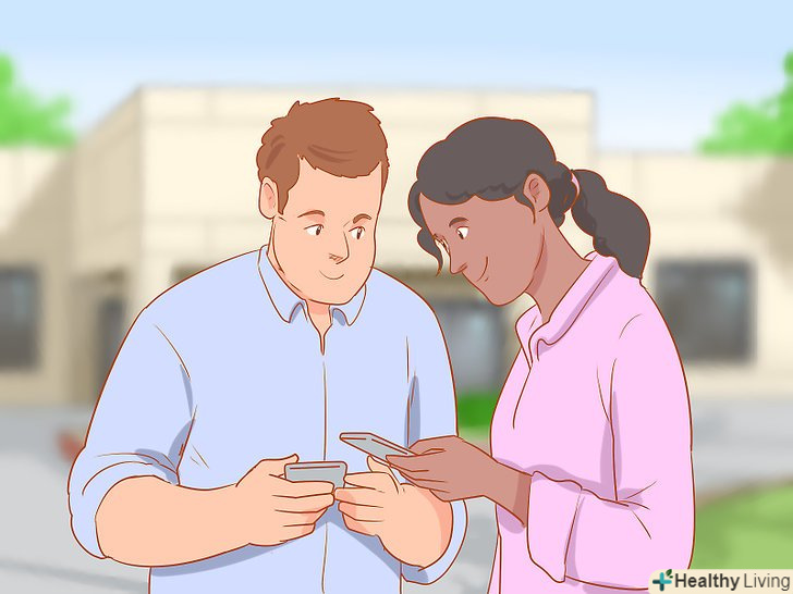 Попросіть номер телефону дівчини. якщо розмова складається вдало, то попросіть номер телефону, щоб зателефонувати в майбутньому. Наприклад, скажіть: "мені здається, нам буде цікаво краще пізнати один одного. Може, обміняємося телефонними номерами, щоб залишатися на зв'язку?". Не обов'язково чекати кінця розмови, щоб попросити номер телефону. Виберіть відповідний момент, коли ви зрозумієте, що між вами виник взаємний інтерес. Такий момент називається вікном можливостей. Не пропустіть шанс.- Зателефонуйте або напишіть дівчині через один-два дні після зустрічі. Це дуже важливо-чим довше ви баріться, тим вище ймовірність, що дівчина забуде про вас, а шанси на повторну зустріч будуть знижуватися. Зазвичай дзвінок ефективніше повідомлення, оскільки він покаже вашу впевненість в собі, а також дозволить поговорити на більш особистому рівні і продовжити бесіду з того місця, на якому ви зупинилися.