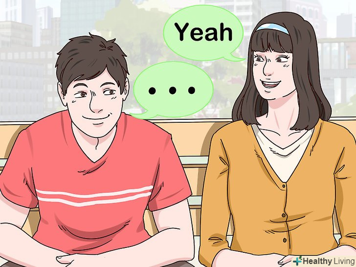 Періодично робіть паузи. після початку бесіди дівчина може замовкнути. Не використовуйте це як привід захопити лідерство в бесіді. Робіть паузи, щоб вона могла озвучити зауваження або підтвердити почуте словами «так» або «звичайно». Згодом вона почне активніше брати участь в розмові. [9]ПОРАДА ФАХІВЦЯМоше Ратсон-виконавчий директор spiral2grow Marriage amp; Family Therapy, психотерапевтичної та консультаційної клініки в місті Нью-Йорку. Отримав магістерський ступінь з психотерапії в галузі сім'ї та шлюбу. Працює психотерапевтом більше 10 років.сімейний психотерапевтMoshe Ratson, MFT, PCC