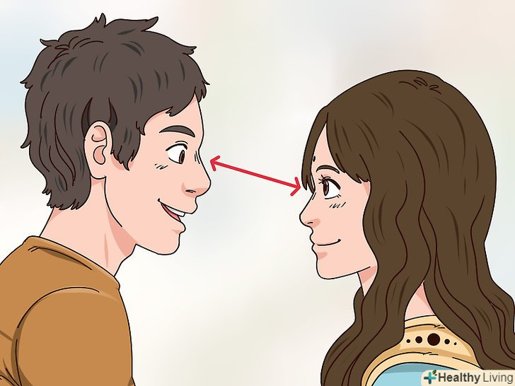 Слідкуйте за напрямком погляду дівчини. він допоможе вам краще зрозуміти її відчуття поруч з вами. Періодично встановлюйте короткий зоровий контакт, коли будете обговорювати спільні інтереси або навіть антипатії. У міру знайомства почніть затримувати погляд на більш довгий час. [13]- Не переживайте, якщо спочатку дівчина буде відводити погляд. Можливо, їй поки комфортно просто дивитися в вашу сторону, а не підтримувати прямий зоровий контакт всю бесіду.