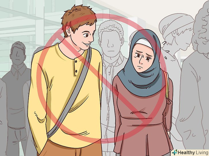 Обходьте стороною людні місця. Сором'язливі особи зазвичай не люблять уваги від багатьох людей. У той же час вони вважають за краще мати можливість звернутися за допомогою, коли може виникнути небезпека. Підходьте до дівчини в ситуації, коли поруч знаходиться кілька людей. Приклади часу і місця: [3]- В кінці дня на автобусній зупинці;