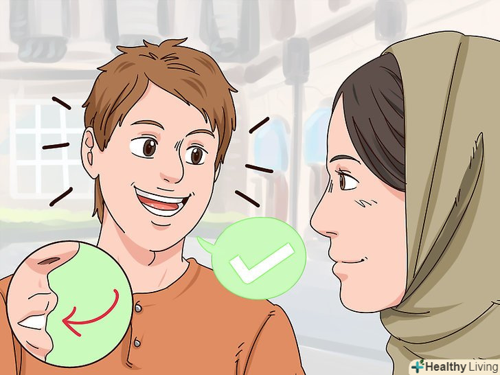 Посміхайтеся. похмурий погляд може відштовхнути дівчину, оскільки він виглядає недружелюбно, а на посмішку реакція дівчини буде більш позитивною. [4] навіть якщо ви не в найкращому настрої, проста посмішка поліпшить ситуацію і допоможе почати бесіду.