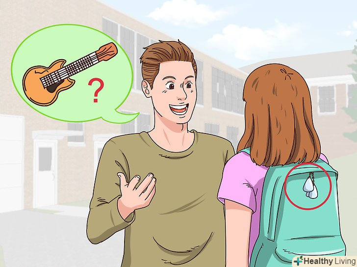 Виберіть дружню тему. по всій видимості саме вам належить почати таку розмову з дівчиною. [8] запитайте про її захоплення, книги або спорт. Розмова не повинна зациклюватися на дівчині, щоб вона не бентежилася. Так, можна сказати:- " Мені подобається твій значок у вигляді гітари. Ти граєш?"Після цього можна перейти до улюблених музикантів або вашої загальної любові до музики в цілому.