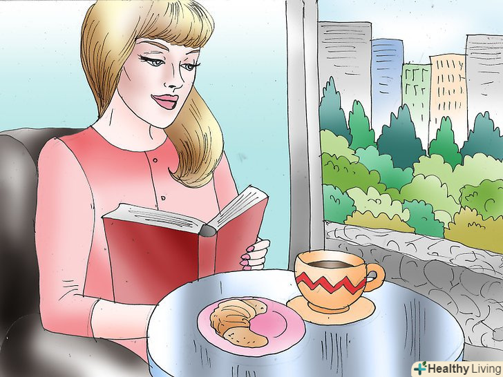 Проводьте час наодинці з собою. у вас обов'язково має бути час побути однією. Це дасть вам прекрасну можливість краще розібратися в собі, розвинути власну думку, заспокоїтися і подумати. [17]- Влаштуйте собі побачення з книгою. Візьміть хорошу книгу в кафе, замовте каву і круасан і читайте собі на втіху цілу годину, протягом якого вас ніхто не потурбує. [18]