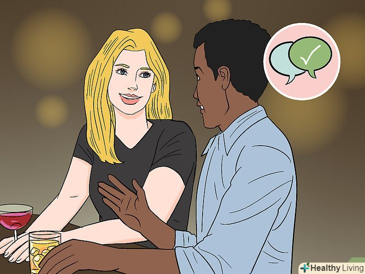 Підтримуйте відкриту і невимушену бесіду. зосередьтеся на розмові з дівчиною, яка вам цікава. Будьте поруч і жартуєте, щоб вона залишалася в гарному настрої, або підтримуйте невимушену атмосферу, обмінюйтеся жартами під час гри в більярд і за келихом улюбленого напою. [6]- На початку розмови використовуйте фрази дівчини, щоб задавати відкриті питання на кшталт: "Ти любиш футбол? Яка твоя улюблена команда?"- або: "що ти вивчаєш в університеті?"Якщо вона продовжує приділяти Вам увагу, перейдіть до простих і невимушених питань. "Подобається тут?"дозволить швидше перейти до флірту, ніж розпитування про подорожі.
