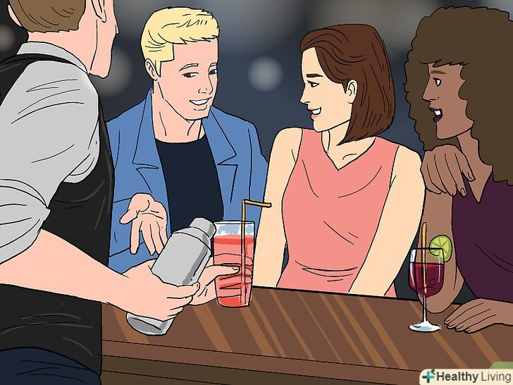 Почастуєте дівчину і її подруг. замовте і оплатіть кілька напоїв для дівчини і її подруг, щоб напевно привернути увагу. Визначте, що п'є дівчина, або зверніться з питанням до бармена. Замовте такий же або схожий напій. [3]- Почастуєте не тільки дівчину, але і її подруг, щоб проявити ввічливість і такт по відношенню до інших. Такий вчинок покаже, що ви не уявляєте небезпеки і лише хочете виглядати доброзичливим хлопцем.