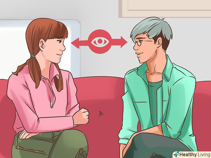 Підключайте мову тіла! багато людей губляться в спробах донести свої почуття співрозмовнику, тому часто ми випускаємо з уваги важливі сигнали, які посилає наше тіло. Це дуже ефективний спосіб натякнути дівчині про свої почуття, не кажучи при цьому ні слова. [2]- Подивіться їй в очі . Підтримувати зоровий контакт іноді дійсно важко, і найчастіше при звичайному спілкуванні люди не дивляться в очі один одному довше однієї секунди. Тому можна ясно натякнути дівчині, що вона вам подобається, піймавши її погляд і підтримавши зоровий контакт на секунду довше, ніж слід було б. Але не переборщіть із зоровим контактом! Інакше це може виглядати трохи агресивно або навіть збентежити людину.
