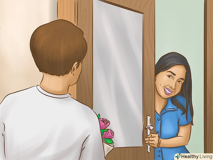 Якщо ви вирішили за нею заїхати, то замість того щоб написати їй повідомлення, що ви приїхали, підійдіть до дверей будинку і зустріньте її там. це покаже, що Ви впевнені в собі і що вона вам небайдужа. Якщо ви принесли з Квіти, саме час їх подарувати.
