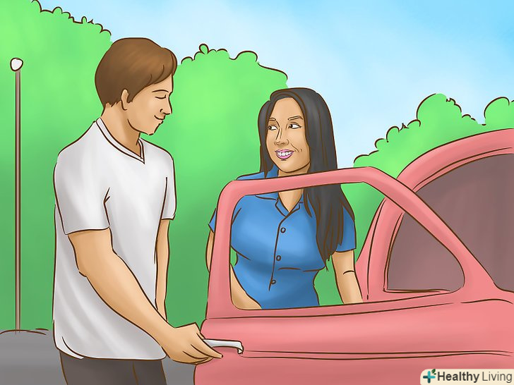 Відкрийте їй двері машини і акуратно закрийте, коли вона сяде в автомобіль. цей джентльменський жест деякі вважають старомодним. Вашій супутниці це може сподобатися, а може і не сподобатися, але це допоможе вирішити, який тон задати вашому побаченню.- Якщо ви відкрили двері, і дівчина відреагувала досить негативно, то це варто взяти до уваги і, можливо, дозволити їй самій закрити двері.