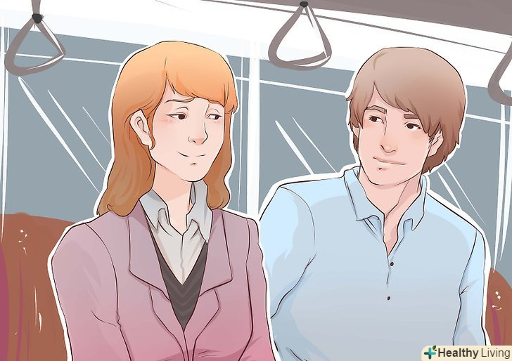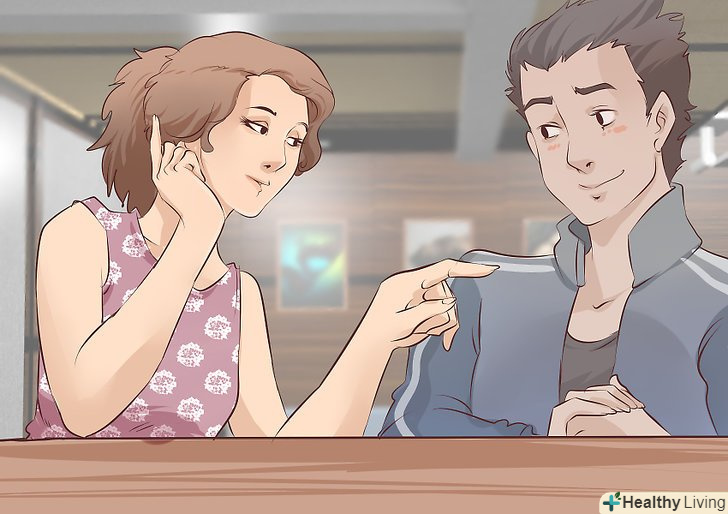 Встановіть зоровий контакт і посміхайтеся . Час від часу поглядайте на людину, яка вам цікавий, але намагайтеся не перестаратися. Посміхніться, якщо ваші погляди зустрілися. Якщо людина посміхнулася у відповідь, це може вказувати на взаємний інтерес.