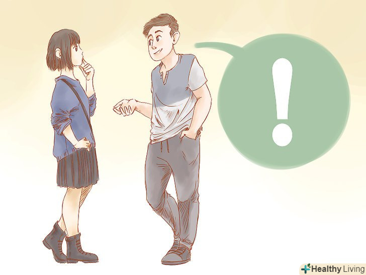 Проводьте час в спокійних і ненапружених умовах. можна разом прогулятися по парку або покататися на велосипедах. Якщо у вас є собаки, то запропонуйте вигулювати їх разом. На додаток до зустрічей наодинці можна також проводити час з друзями. Це часто дозволяє уникнути напруги і не відмовлятися від зустрічей. [16]- На перших зустрічах може виникати почуття незручності або хвилювання. Спокійна обстановка і спільні зустрічі з друзями допоможуть вам уникнути незручності в компанії один одного.