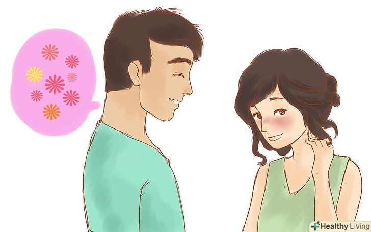 Натякайте на свої почуття. почніть фліртувати, коли ваші бесіди стануть частішими. Так, можна частіше робити компліменти, разом обідати і проводжати дівчину на наступний урок, якщо ви вчитеся в одній школі. [7]- Можна навіть сказати: «здається, ти мені сподобалася», — або: «можливо, я трохи закохався в тебе». Все повинно відбуватися природно, без хвилювання і напруги.