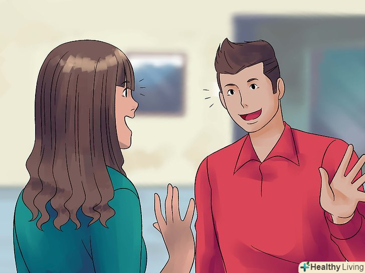 Почніть розмову. підійдіть до людини, до якої Ви небайдужі, і скажіть що-небудь приємне або смішне. Дайте людині можливість відповісти.