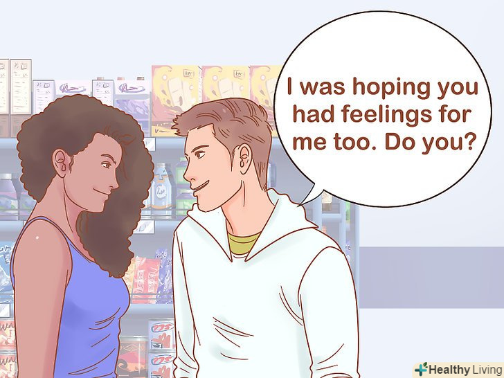 Скажіть їй про свої почуття. якщо дівчина не звертає уваги на ваші натяки, спробуйте сказати їй прямо про свої почуття. Дівчатам подобаються чесні хлопці. Їм не подобається, коли грають з їхніми почуттями. Тому, якщо ви зробите перший крок, дівчина відчує полегшення. Якщо ви скажете їй, що відчуваєте до неї почуття, можливо, вона зізнається, що Ви теж їй подобаєтеся. [8]