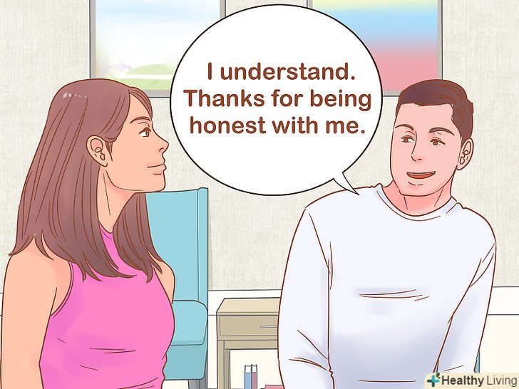 - Якщо дівчина говорить вам, що ви їй не подобаєтеся, але ви сумніваєтеся, що зможете зберегти з нею дружні стосунки, продовжуйте говорити з нею спокійним і приємним тоном. Наприклад, можна сказати: "я все зрозумів. Спасибі, що ти чесно сказала мені про це».