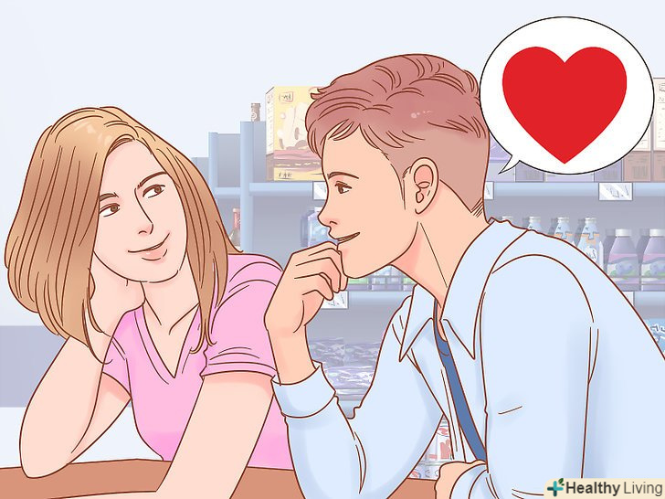 Фліртуйте з дівчиною. Якщо ви соромитеся прямо сказати дівчині, що вона вам подобається, Ви можете показати своє ставлення до неї за допомогою флірту. Робіть їй компліменти, жартуєте з нею, загравайте і говорите їй те, що покаже ваш романтичний інтерес.- Наприклад, якщо вона погано відгукується про своє минуле побачення, ви можете сказати з посмішкою: «Наше побачення пройшло б набагато краще».