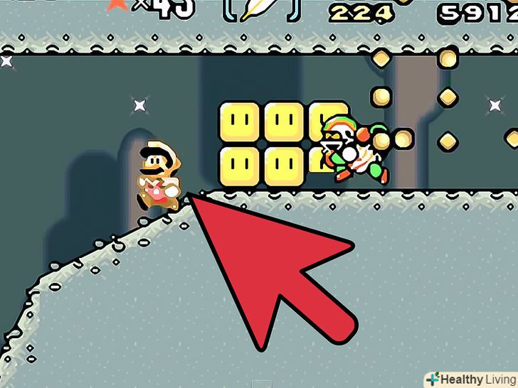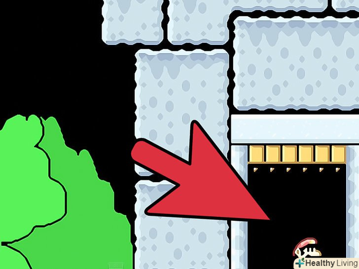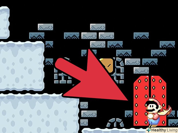 Принесіть р-перемикач на платформу, що знаходиться за плаваючою дверима і стрибніть на нього.монети під дверима перетворяться в блоки, на які ви зможете встати.