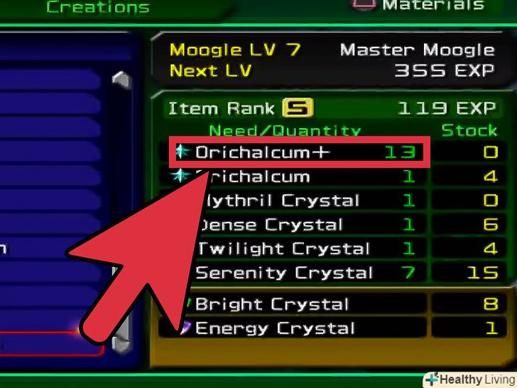 Маючи всі синтезовані матеріали в грі і moogle в машині синтезу дозволить вам отримати ще один orichalcum+.