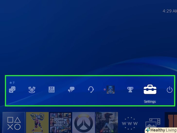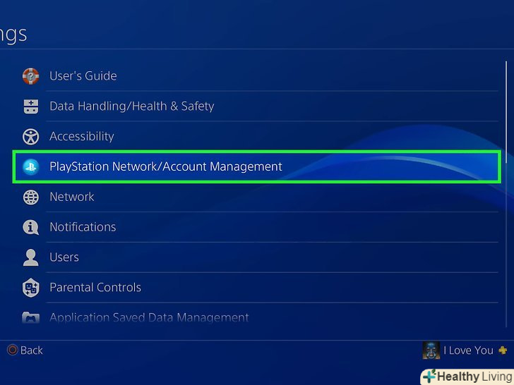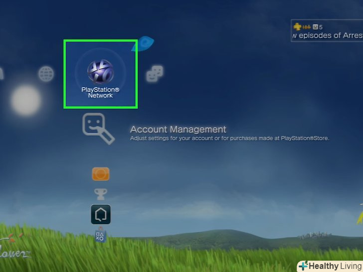 Прокрутіть вправо, виберітьPlayStation Network, а потім натисніть X.залежно від версії програмного забезпечення вашої консолі ця опція може називатися «PSN».
