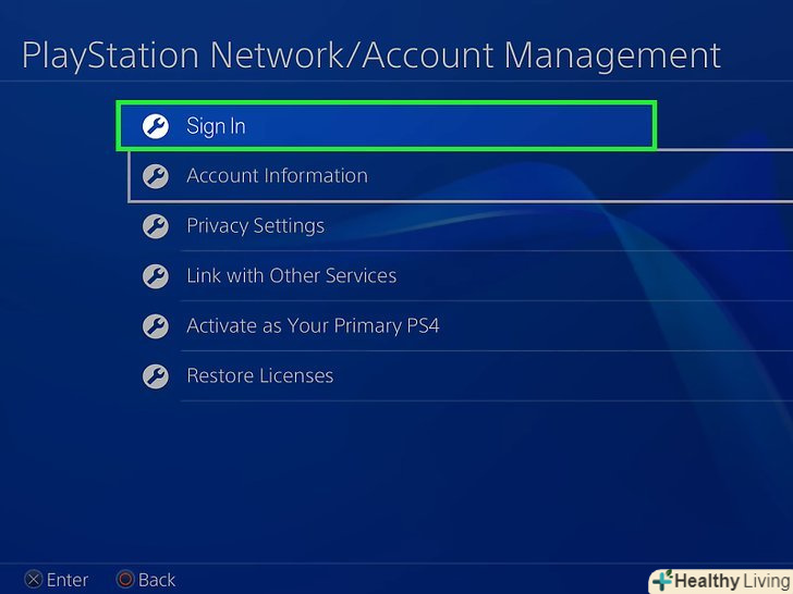 ВиберітьВхід і натисніть X.це перша опція в меню.- Якщо першою опцією меню є "дані облікового запису«, виберіть її, натисніть» X", а потім пропустіть наступні три кроки.
