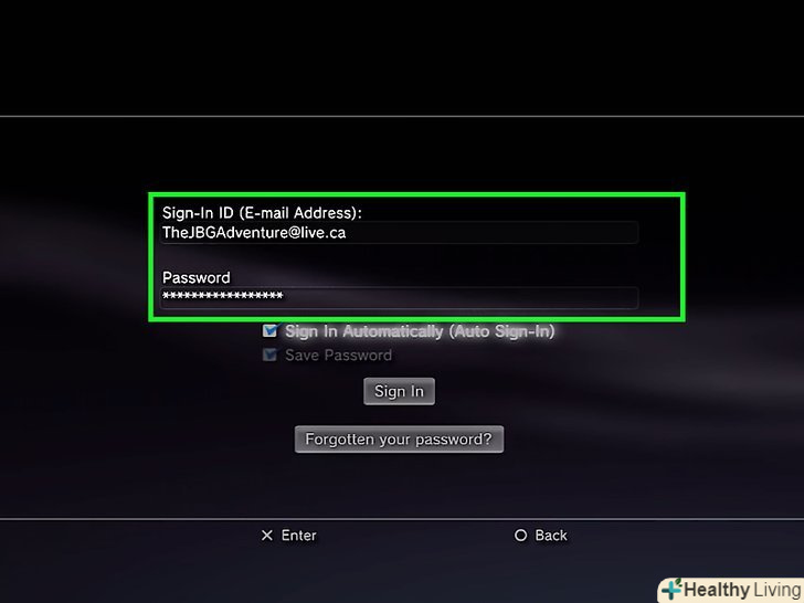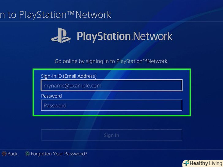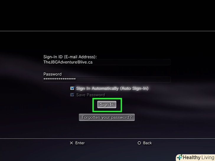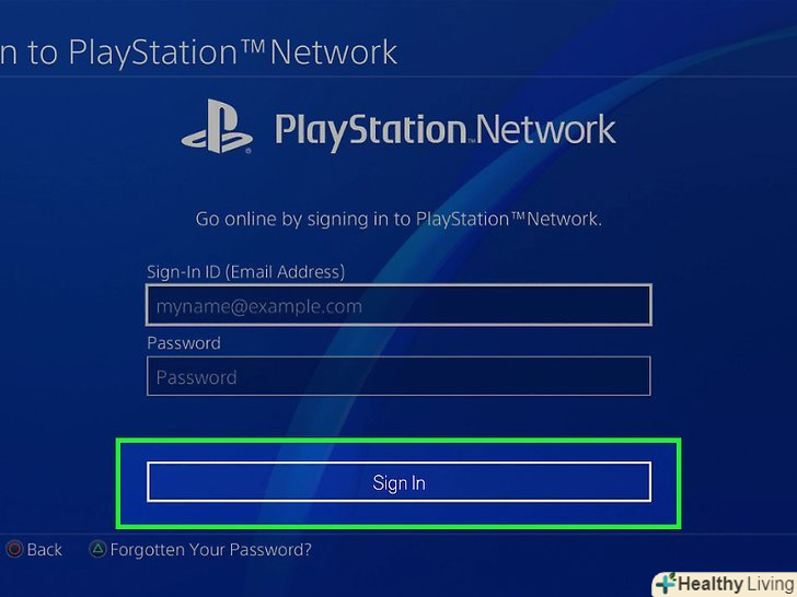 ВиберітьУвійти і натисніть X.ви авторизуєтеся в сервісі PlayStation Network.