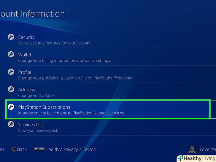 ВиберітьПідписки PlayStation і натисніть X.ви знайдете цю опцію внизу екрана.