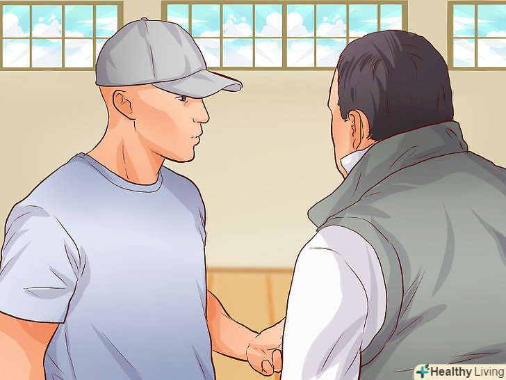 Завжди демонструйте порядність. ви можете бути капітаном команди або висхідною зіркою спорту, але при цьому потрібно залишатися скромним і ввічливим.- Якщо ви тренуєтеся в команді, надихніть своїх колег по спорту. Не зазнавайтеся і не посміхайтеся, якщо вони зробили помилку. Замість цього покажіть їм, як поліпшити гру і зробіть комплімент у разі потреби.