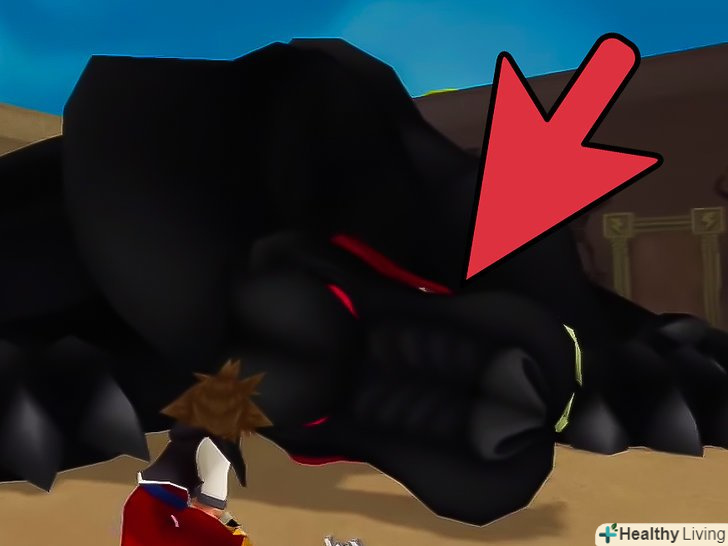 Сконцентруйтеся на одній з голів цербера. На лівій або правій, але не на середній. Коли він буде кидати в вас енергетичні кулі-ухиляйтеся, відкочуючись в сторону. Коли він стане гарчати в небо, значить, він зараз піде в атаку зубами. Атакуйте його відразу ж! Підійдіть до нього і атакуйте одну з його бічних голів. Атакуйте один раз, потім швидко відійдіть, якщо ви не відійдете вчасно, Церебрус вас атакує дуже потужним ударом.
